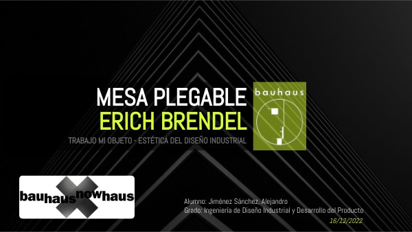 -Erich Brendel. -Bauhaus (Educación mediante diseño, arquitectura, etc). -Primer periodo: Weimar-Dessau (Walter Gropius). ·Trabajos estructurales y arquitectónicos. ·Profesor Cons. Edificios (Frankfurt).