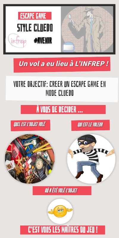 VOTRE OBJECTIF: Creer un escape game en mode cluedo