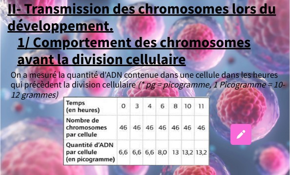 II- Transmission des chromosomes lors du développement.1/ Comportement des chromosomes avant la division cellulaire