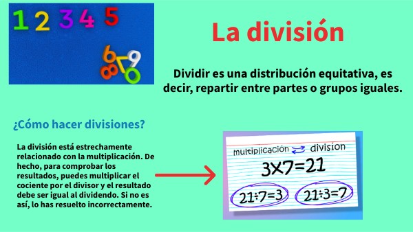 Dividir es una distribución equitativa, es decir, repartir entre partes o grupos iguales.
