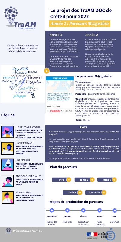 En poursuivant les travaux réalisés l'année dernière, nous devons créer un parcours de formation M@gistère à destination de nos collègues enseignants. Nous avons fait le choix de créer un parcours pour former les collègues à la réutilisation de parcours Moodle auprès de leurs élèves (comme ceux de P@ssEMI) en les intégrant sur les ENT.
