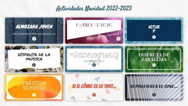 DECORACIÓN NAVIDEÑA, MANUALIDADES Y OCIO ALTERNATIVO Zona Joven Casco Viejo C/ San Vicente de Paul, 22. (Casco Histórico) Tel. 976 292 446 Horario: las tardes de 13, 14, 15, 23 y 30 de diciembre, de 17,30 a 20 h Actividad gratuita para jóvenes entre 12 y 19 años. Requiere inscripción.