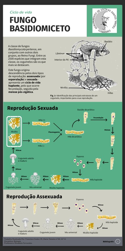 A classe de fungos Basidiomycota pertence, em conjunto com outros dois grupos, ao Reino Fungi. Entre as 2500 espécies que integram esta classe, os cogumelos são os que mais se destacam.