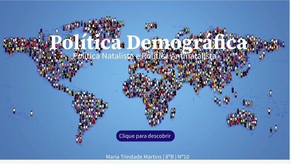 A minha conclusão sobre as Políticas Demográficas. Na minha opiniã a Política Natalista deveria ser "usada" em todos os países do mundo, porque ter apenas um filho por mãe, o mundo ficaria com muita pouca criança e mais senhores de idade mais velha. Na minha opiniã a Polítca Antinatalista não deveria ser "usada", porque se ela for "usada" não teremos muitas crianças para serem o futuro do nosso planeta Terra, e ficariamos com muitos senhores de idade.