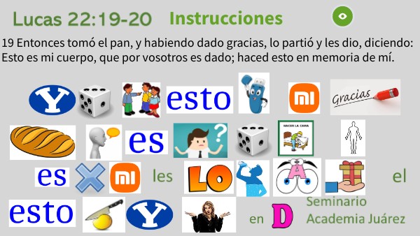 19 Entonces tomó el pan, y habiendo dado gracias, lo partió y les dio, diciendo: Esto es mi cuerpo, que por vosotros es dado; haced esto en memoria de mí.