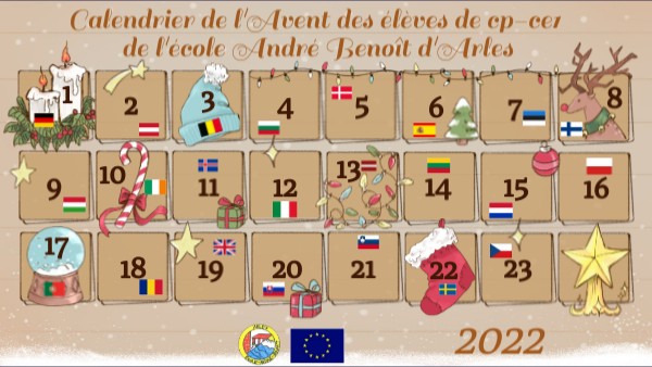 Calendrier de l'Avent des élèves de cp-ce1 de l'école André Benoît d'Arles