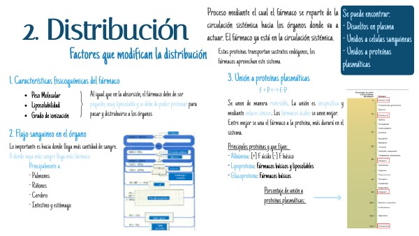 Al igual que en la absorción, el fármaco debe de ser pequeño, muy liposoluble y se debe de poder protonar para pasar y distrubuirse a los órganos