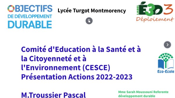 Comité d'Education à la Santé et à la Citoyenneté et à l'Environnement (CESCE) Présentation Actions 2022-2023 M.Troussier Pascal