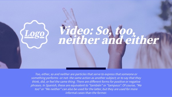 We will always place these conjunctions at the end of the sentence. In this way, you will emphasize the type of coincidence in question. Finally, when two equal sentences are said, although with different subjects and joined by the conjunction and, we will dispense with the verb in the last sentence. However, we will keep the auxiliary, whenever its use is necessary.