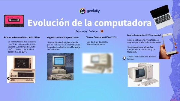 Cuarta Generación (1971-presente) Se desarrollaron nuevos chips con mayor capacidad de almacenamiento. Se comenzaron a utilizar las computadoras personales y las Macintosh. Se desarrolló el diseño de redes. Internet
