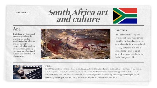 Traditional art forms such as dancing and textile weaving are used as vehicles of ethnic identity and are carefully preserved, while modern art forms from painting to literature have flourished in the years since the end of apartheid.