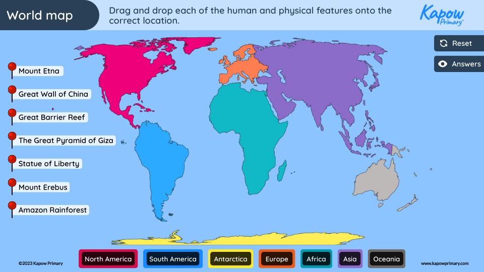 Drag and drop each of the human and physical features onto the correct location.