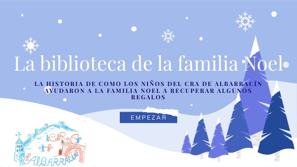 Era una tarde fría de primeros de diciembre cuando Papá Noel entró en su grandiosa biblioteca a buscar un regalo para Gemma, una niña de 8 años que necesitaba un poco de AMOR. Fue en ese momento cuando se dio cuenta que algunos de sus libros más importantes habían desaparecido. ¡Este año no podría regalar emociones y sentimientos! ¡Estaba perdido! Entonces se le ocurrió una idea, pediría ayuda a los niños del mundo para que le ayudasen a encontrar historias sobre sentimientos que pudiesen compartir y así salvar la Navidad. Cogió su bola del mundo, la giró y señaló en el mapa un lugar. Los niños de ese sitio serían los que le ayudarían a salvar la Navidad. ¿Sabéis el lugar que indicó su dedo? Sí, sí,. ¡Los niños del CRA de Albarracín serían este año los ayudantes de Papá Noel!