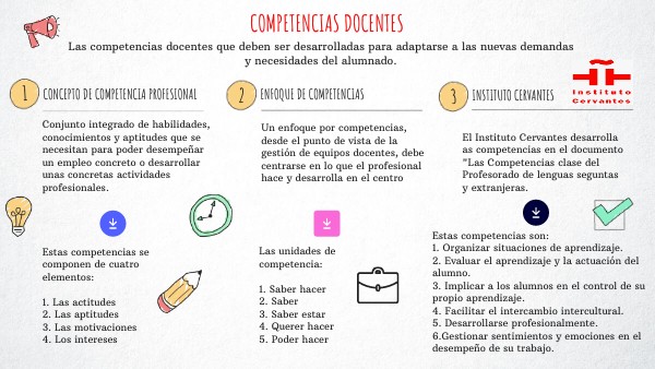 El Instituto Cervantes desarrolla as competencias en el documento "Las Competencias clase del Profesorado de lenguas seguntas y extranjeras.