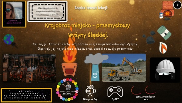 Cel zajęć: Poznasz cechy krajobrazu miejsko-przemysłowego Wyżyny Śląskiej, jej największe miasta oraz skutki rozwoju przemysłu