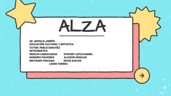 UE. NATALIA JARRÍN EDUCACIÓN CULTURAL Y ARTISTICA TUTOR: PABLO SANCHÉZ INTEGRANTES: MERLYN CABASCANGO ESTEFANY CATUCUAMBA DAMARIS FIGUEROA ALISSON HIDALGO BRITHANY PINCHAO KEVIN SIGCHO LENIN TORRES