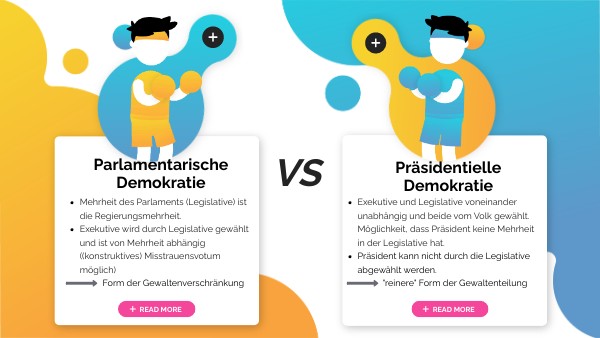 - Exekutive und Legislative voneinander unabhängig und beide vom Volk gewählt. Möglichkeit, dass Präsident keine Mehrheit in der Legislative hat.