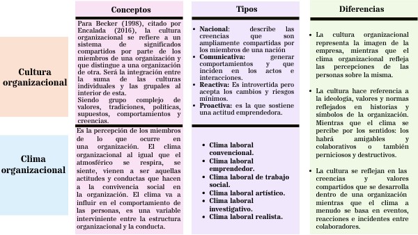 Cuadro comparativo del la Cultura organizacional y Clima Organizacional.