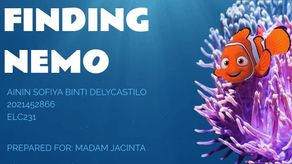 I would recommend Finding Nemo to anyone especially among students. This story teach us to keep moving forward and to not give up in life.