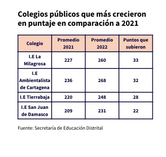 Colegios públicos que más crecieron en puntaje en comparación a 2021
