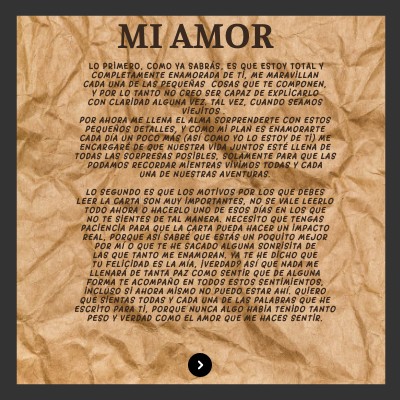 Lo primero, como ya sabrás, es que estoy total y completamente enamorada de ti; me maravillan cada una de las pequeñas cosas que te componen, y por lo tanto no creo ser capaz de explicarlo con claridad alguna vez. Tal vez, cuando seamos viejitos . Por ahora me llena el alma sorprenderte con estos pequeños detalles, y como mi plan es enamorarte cada día un poco más (así como yo lo estoy de ti) me encargaré de que nuestra vida juntos esté llena de todas las sorpresas posibles, solamente para que las podamos recordar mientras vivimos todas y cada una de nuestras aventuras. Lo segundo es que los motivos por los que debes leer la carta son muy importantes, no se vale leerlo todo ahora o hacerlo uno de esos días en los que no te sientes de tal manera. Necesito que tengas paciencia para que la carta pueda hacer un impacto real, porque así sabré que estás un poquito mejor por mí o que te he sacado alguna sonrisita de las que tanto me enamoran. Ya te he dicho que tu felicidad es la mía, įverdad? Así que nada me llenará de tanta paz como sentir que de alguna forma te acompaño en todos estos sentimientos, incluso si ahora mismo no puedo estar ahí. Quiero que sientas todas y cada una de las palabras que he escrito para ti, porque nunca algo habia tenido tanto peso y verdad como el amor que me haces sentir.