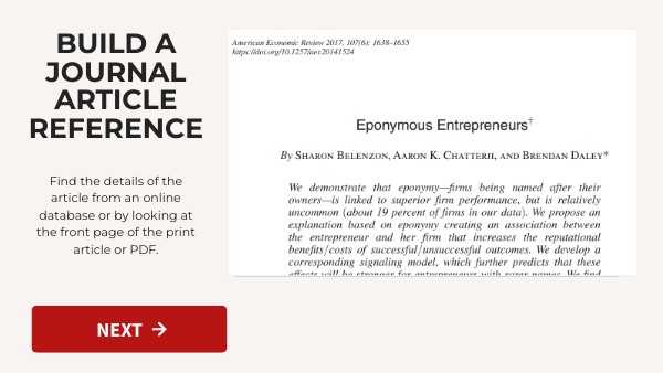 Find the details of the article from an online database or by looking at the front page of the print article or PDF.
