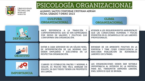 CUADRO COMPARATIVO - PSICOLOGÍA ORGANIZACIONAL