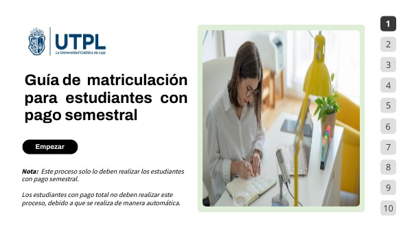 MANUAL PASO A PASO DE MATRICULACIÓN PAGO SEMESTRAL UTPL