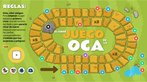 Juego tradicional de la Oca para repasar temas relacionados con la ciberseguridad de los menores.