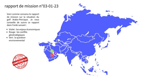 Voici comme convenu le rapport de mission sur la situation du golf Arabo-Percique. Je vous conseille de suivre ce rapport dans l'orde suivant :