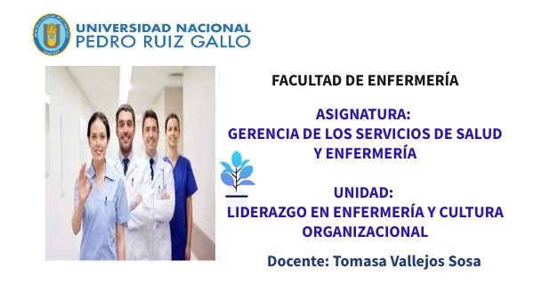 ASIGNATURA: GERENCIA DE LOS SERVICIOS DE SALUD Y ENFERMERÍA UNIDAD: LIDERAZGO EN ENFERMERÍA Y CULTURA ORGANIZACIONAL