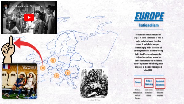 Nationalism in Europe cut both ways; in some instances, it was a major unifying force. In other cases, it pulled states apart. Interestingly, while the ideas of the Enlightenment called for many individual freedoms for people, Nationalism quickly subverted those freedoms to the will of the state- a process which only grew stronger in the next time period after 1900.