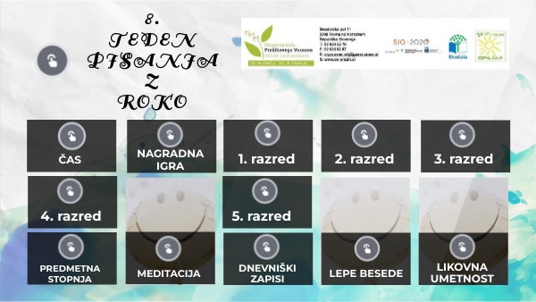 Pred nami je bera izdelkov, ki so nastajali v TEDNU PISANJA Z ROKO. Prežihovci se zavedamo, da pisanje z roko sprošča kreativnost, telo in živce. Pomaga nam pri učenju, pisanje (pozitivnih) sporočil pa nas naredi srečnejše. Rdeča nit letošnjega 8. Tedna pisanja z roko je bila Mislim tiho, pišem počasi. Zapisovali smo lepe besede, saj jih nosimo v sebi, zato jih počasi, z občutkom in ljubeznijo pišemo. Nastajali so dnevniški zapisi in spominske knjige. Razmišljali smo o naših pozitivnih lastnostih ter kje in kdaj se čas lahko ustavi. Kateri so tisti trenutki, za katere želimo, da bi trajali večno? Veliko užitkov ob raziskovanju interaktivne platforme. Mateja Čebulj, vodja šolske skupnosti in koordinatorka projekta na šoli