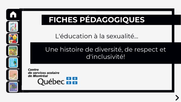 Afin de faciliter la réalisation d'activités éducatives avec les enfants, six (6) merveilleux livres sont à la disposition du personnel enseignant. Ces livres permettent notamment d'aborder de façon inclusive le corps humain, les émotions, le consentement, les stéréotypes de genre, l'identité, ainsi que la grossesse et la naissance. Chacun est présenté ci-après et inclut une fiche pédagogique pour guider vos lectures. Cette fiche contient :