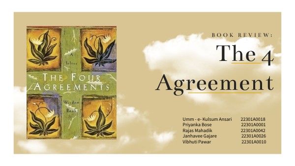 The book four agreements is a well written and a thought provoking book . The author has used simple language which makes it easy for the reader. From this book the author reveals the source of self limiting beliefs that rob us of joy and create needless suffering. We were greatly inspired from this book as it has motivated us and will always push us to achieve greater goals