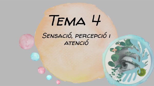 Com funcionen els nostres ulls? Com arriben els sons a les nostres oïdes? Qué podem percebre a través del tacte? Quante gustes reconeix la llengua? Quines olors capta el nostre nas? El poeta William Wordsworth dels que si parem atenció de debò als nostres sentits podem veure la vida interior de les coses i sentir el silenci, una música trista de la humanitat. De vegades, ens pensem que només obrint els ulls mirant al voltant nostre percebem sense esforç formes, objectes i tot el que ens envolta. Tanmateix, la sensació, la percepció, l'atenció són processos complexos que ajuden al funcionament de la ment, però no constitueixen un fenomen unitari, sinó més aviat un conjunt de funcions. La sensació consisteix a rebre, convertir transmetre informació sensorial del ambient extem i inter al nostre cervell. la percepció ens permet organitzar i interpretar els estimuls captats pels sentits, donant-los un significat. La percepció no és un enregistrament mecànic dels estimuls, sinó que està condicionada per factors subjectius, com l'experiència, la personalitat o la cultura. L'atenció implica concentració, esforç per seleccionar els estimuls més importants per a la nostra supervivència. És un procés psicològic de gran valor adaptatiu. L'atenció Il-lumina qui atén. Qui sap dirigir la seva atenció disposa d'una facultat extraordinària per analitzar, descobrir i assolir els objectius que es proposi a la vida.