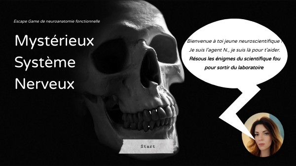 Bienvenue à toi jeune neuroscientifique !Je suis l'agent N., je suis là pour t'aider.Résous les énigmes du scientifique fou pour sortir du laboratoire