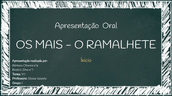 No âmbito da disciplina de Português, foi-nos proposto fazer a realização de uma apresentação, cujo o tema é "Os Maias - O Ramalhete". Um dos objetivos da apresentação é ficar a conhecer melhor sobre esta obra. A metodologia utilizada foi a pesquisa em plataformas digitais e a visualização de um filme visto em aula.
