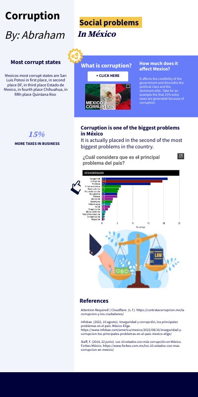 Attention Required! | Cloudflare. (s. f.). https://contralacorrupcion.mx/la-corrupcion-y-los-ciudadanos/ infobae. (2022, 10 agosto). Inseguridad y corrupción, los principales problemas en el país: México Elige. https://www.infobae.com/america/mexico/2022/08/10/inseguridad-y-corrupcion-los-principales-problemas-en-el-pais-mexico-elige/ Staff, F. (2014, 22 junio). Los 10 estados con más corrupción en México. Forbes México. https://www.forbes.com.mx/los-10-estados-con-mas-corrupcion-en-mexico/