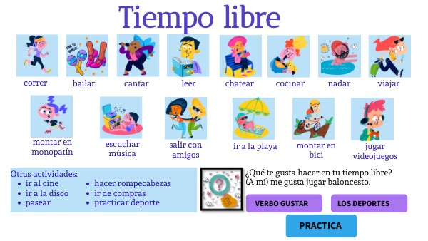 ¿Qué te gusta hacer en tu tiempo libre? (A mí) me gusta jugar baloncesto.
