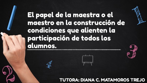 El papel de la maestra o el maestro en la construcción de condiciones que alienten la participación de todos los alumnos.