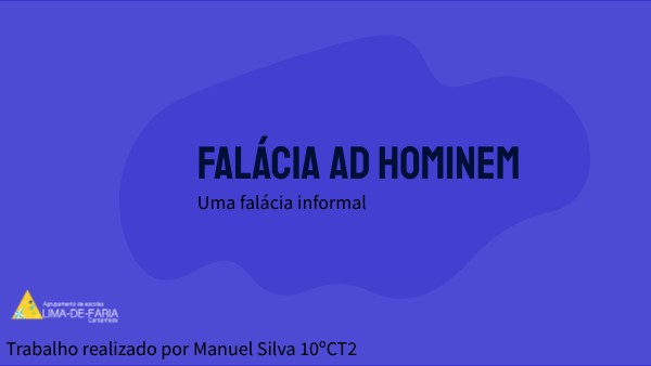 A Lógica é o estudo da formalização das proposições e as suas regras ,ou seja, ajuda-nos a pensar de uma maneira mais correta. Quando tentamos justificar algo utilizamos argumentos, mas, como já foi referido, existem regras que devemos seguir para o fazer, se não as seguirmos, originaremos uma falácia, que pode ser formal (falha na estrutura lógica) ou informal (falha na linguagem natural). Este trabalho foi realizado no âmbito da disciplina de Filosofia com o objetivo de aprofundar o conhecimento acerca de uma falácia informal (ad hominem).
