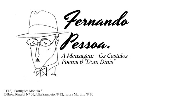 Este trabalho tem como objetivo analisar os símbolos "Os Castelos", a simbologia do número 2 e o poema "D. Dinis" da 1º parte da obra "A Mensagem" de Fernando Pessoa. A primeira parte "O Brasão" compõe-se por 19 poemas e representa o passado da história de Portugal remetendo às lutas e glórias através de poemas. Divide-se em cinco partes, iremos apresentar: I - Os Campos: Os dos Castelos II - Os Castelos: D. Dinis (6)