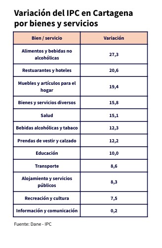 Variación del IPC en Cartagena por bienes y servicios