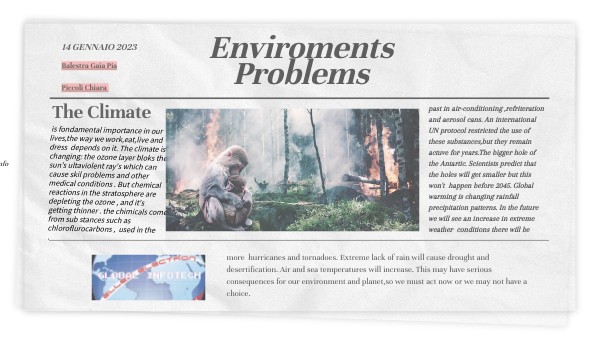 is fondamental importance in our lives,the way we work,eat,live and dress depends on it. The climate is changing: the ozone layer bloks the sun's ultaviolent ray's which can cause skil problems and other medical conditions . But chemical reactions in the stratosphere are depleting the ozone , and it's getting thinner . the chimicals come from sub stances such as chloroflurocarbons , used in the .