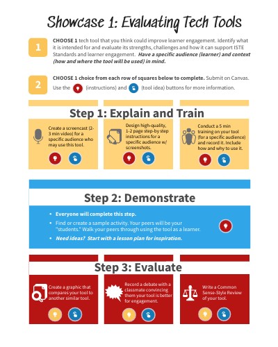 CHOOSE 1 tech tool that you think could improve learner engagement. Identify what it is intended for and evaluate its strengths, challenges and how it can support ISTE Standards and learner engagement. Have a specific audience (learner) and context (how and where the tool will be used) in mind. CHOOSE 1 choice from each row of squares below to complete. Submit on Canvas. Use the (instructions) and (tool idea) buttons for more information.