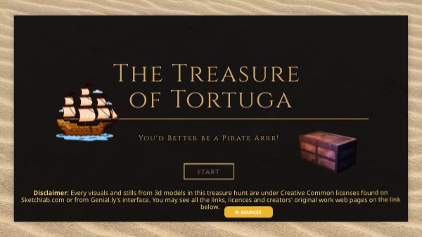 Disclaimer: Every visuals and stills from 3d models in this treasure hunt are under Creative Common licenses found on Sketchlab.com or from Genial.ly's interface. You may see all the links, licences and creators' original work web pages on the link below.