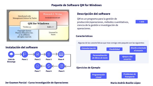 QM es un programa para la gestión de producción/operaciones, métodos cuantitativos, ciencia de la gestión e investigación de operaciones.