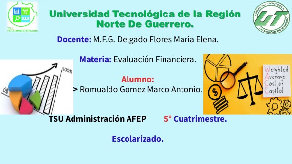 Docente: M.F.G. Delgado Flores Maria Elena.Materia: Evaluación Financiera.Alumno: > Romualdo Gomez Marco Antonio.TSU Administración AFEP 5° Cuatrimestre.Escolarizado.