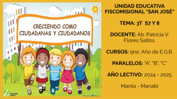 UNIDAD EDUCATIVA FISCOMISIONAL "SAN JOSÈ" TEMA: 3T S7 Y 8 DOCENTE: Ab. Patricia V. Flores Saltos. CURSOS: 9no. Año de E.G.B. PARALELOS: "A", "B", "C" AÑO LECTIVO: 2024 - 2025 Manta - Manabì